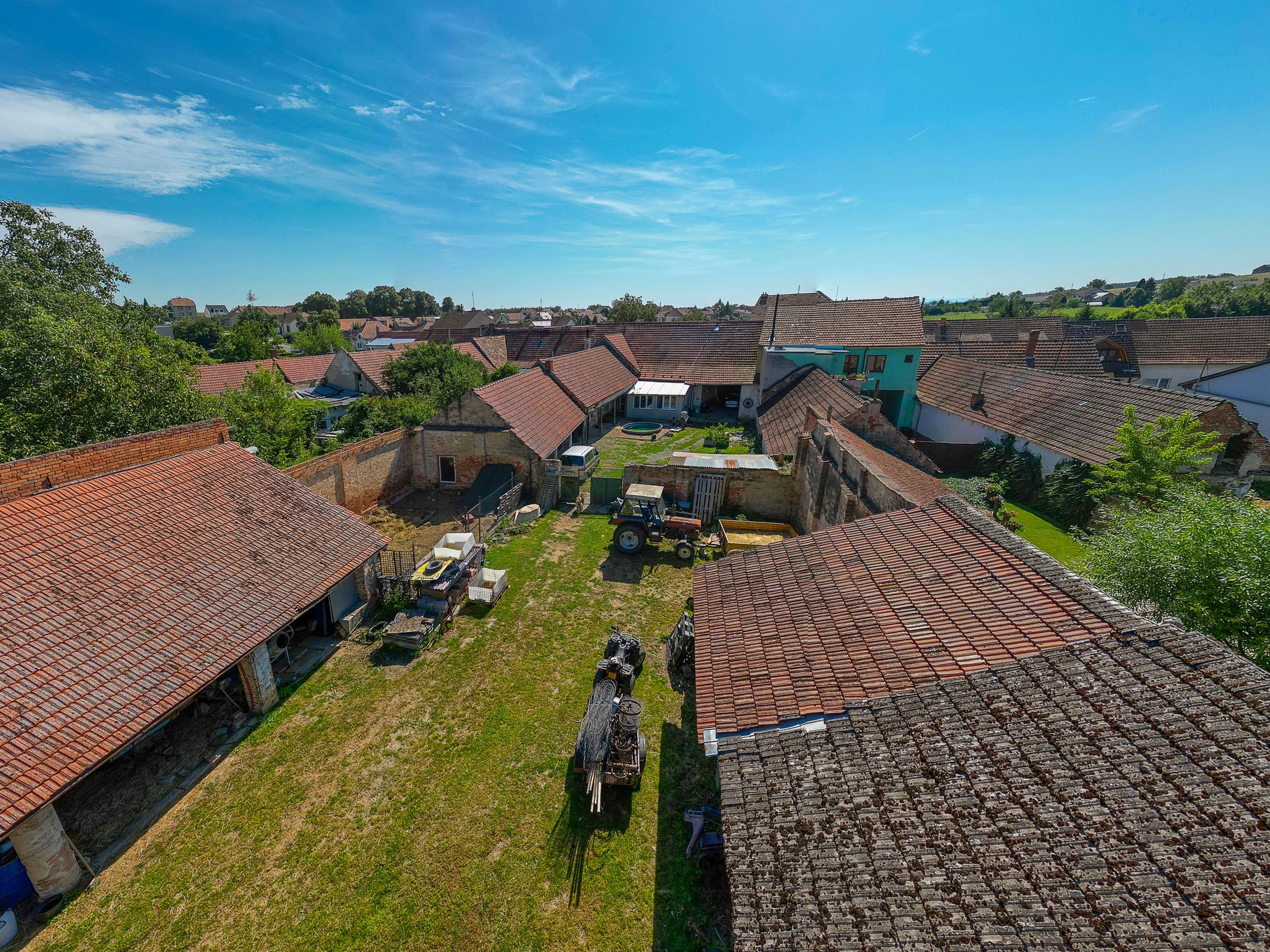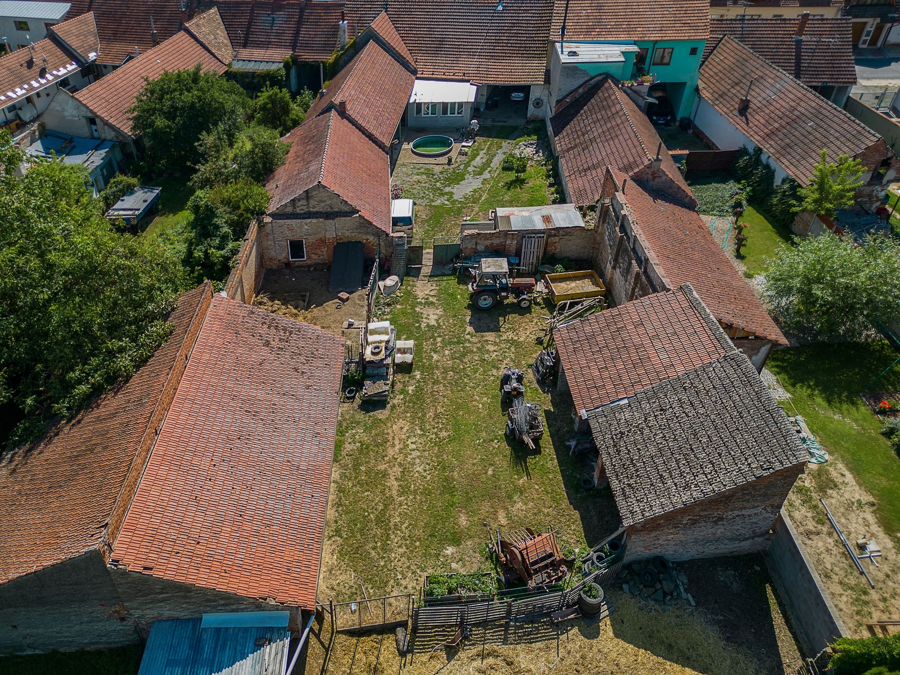 Dům má velký potenciál a to jak v možnosti rozšíření obytné části, tak ve využití prostorného dvora a přístavků, kde jsou garáže, dílna a skladovací prostory.