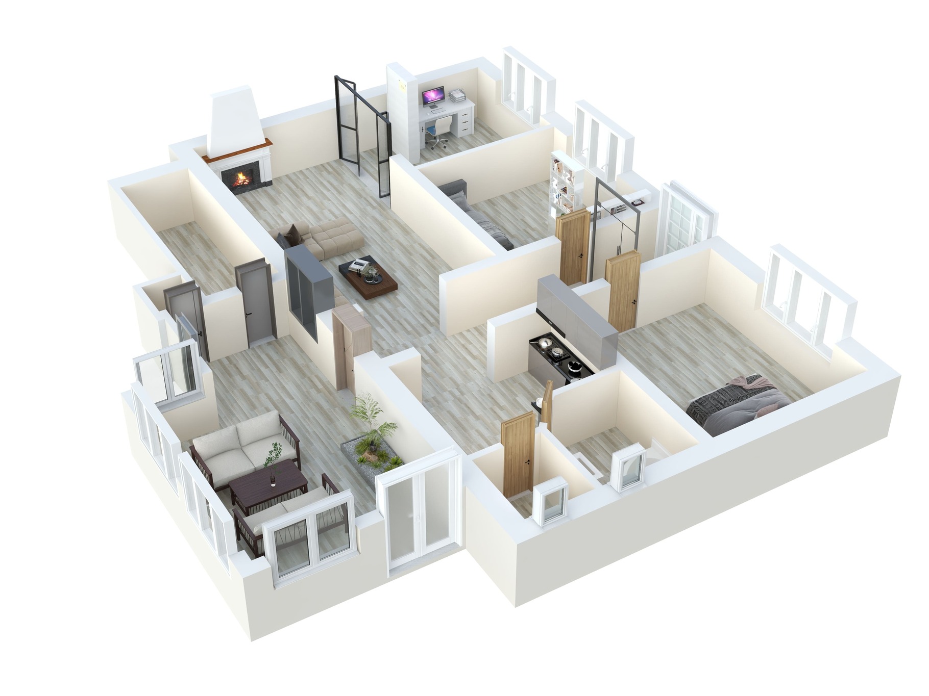 • 1 NP – 141,8 m2 – vstupní chodby, kuchyně, obývací pokoj, pracovna, dva pkoje, koupelna, WC, zimní zahrada, spíž a WC